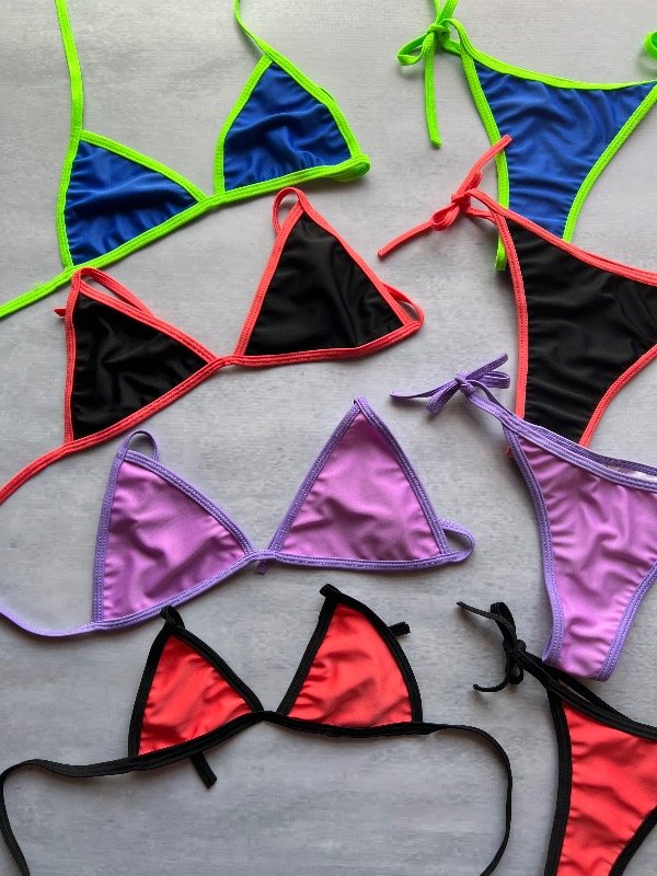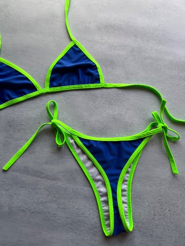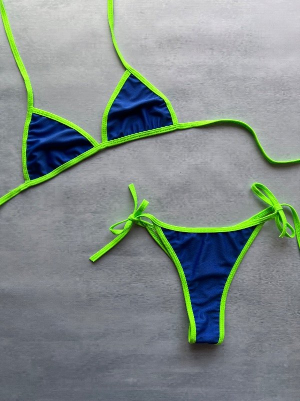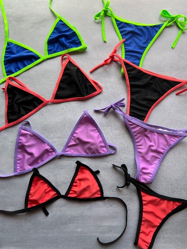 Conjunto de bikini micro, corpiño triangulo combinado para atar, bombacha less para atar