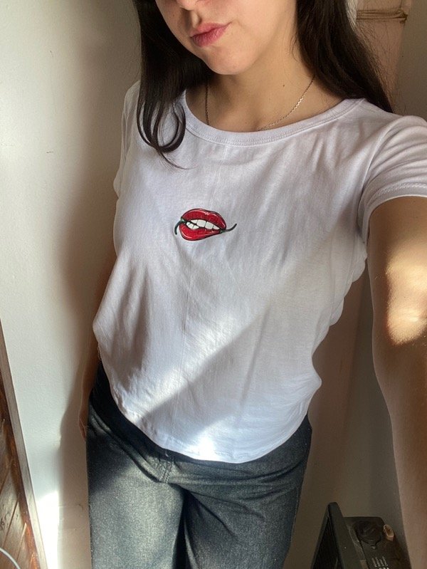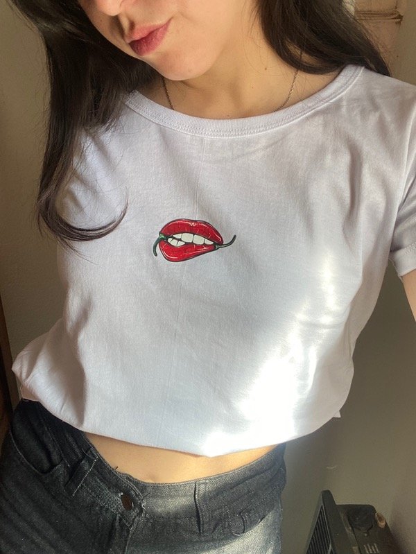 Remera manga corta tipo baby tee cuello redondo