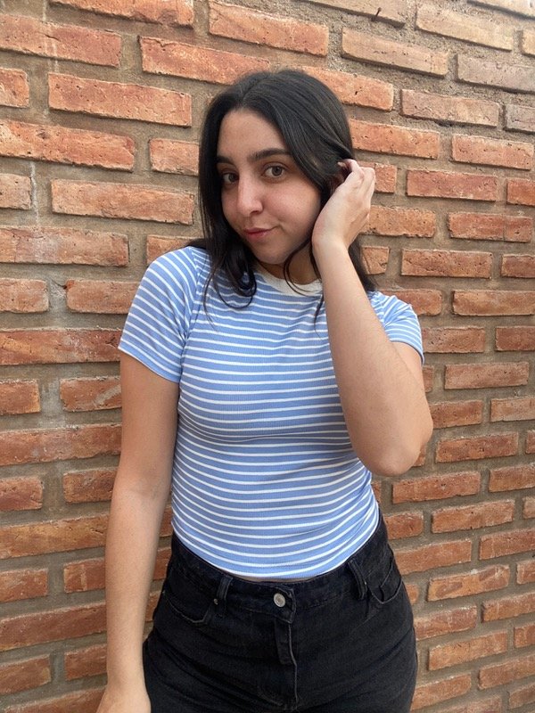 Top rayado manga corta, cuello redondo